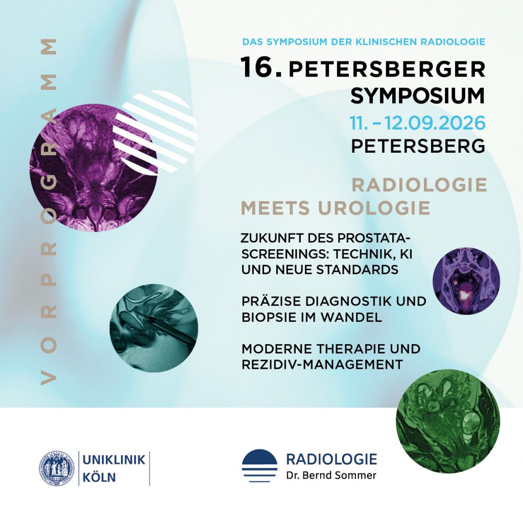 Willkommen zum 16. Petersberger Symposium – dem zentralen Treffpunkt für Expertinnen und Experten der klinischen Radiologie. Unter dem Motto „Radiologie meets Urologie“ widmen wir uns 2026 der Zukunft des Prostata-Screenings: von technischer Innovation über künstliche Intelligenz bis hin zu neuen diagnostischen und therapeutischen Standards.